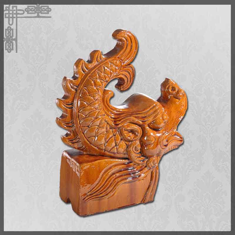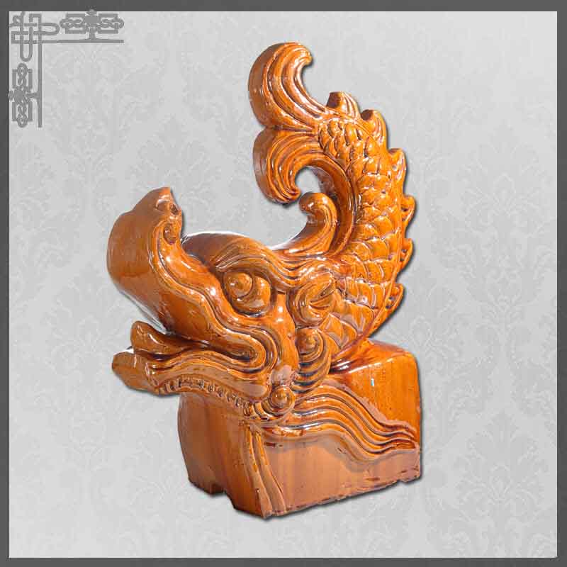 : 魚尾獸。這是手工制作的中國傳統工藝。把它放在垂直脊的末端。