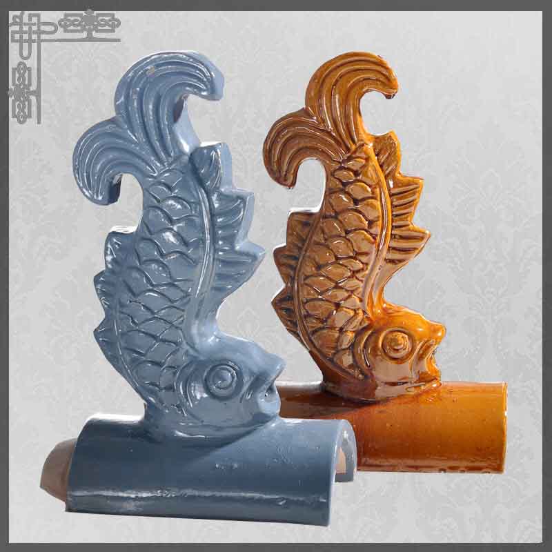 : 魚是水中的神獸。在傳說中,它具有雨和云的控制權。在中國古典屋面應用中排在特定的位置,象龍,鳳,仙人,獅子,馬和魚。
